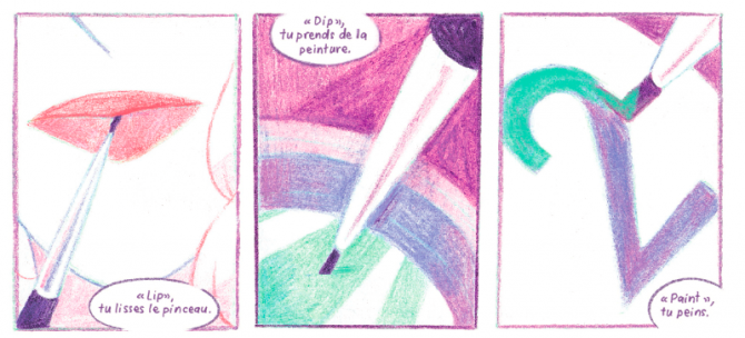 L’histoire des Radium Girls, basée sur des faits réels, est furieusement fascinante. Dans les dessins aux crayons de couleur de Cy, on retrouve toute la sensibilité de ses femmes sacrifiées sur l’autel de la rentabilité. L’autrice travaille sur des camaïeux de bleu et de mauve qui font ressortir le vert du radium, le résultat est magnifique.
